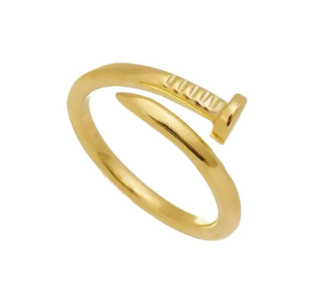 O Anel Ajustável Prego, banhado a ouro, combina design moderno e ousado com elegância. Inspirado em linhas industriais, seu acabamento delicado e ajustável proporciona conforto e versatilidade, tornando-o perfeito para compor looks do dia a dia ou ocasiões especiais com estilo contemporâneo.