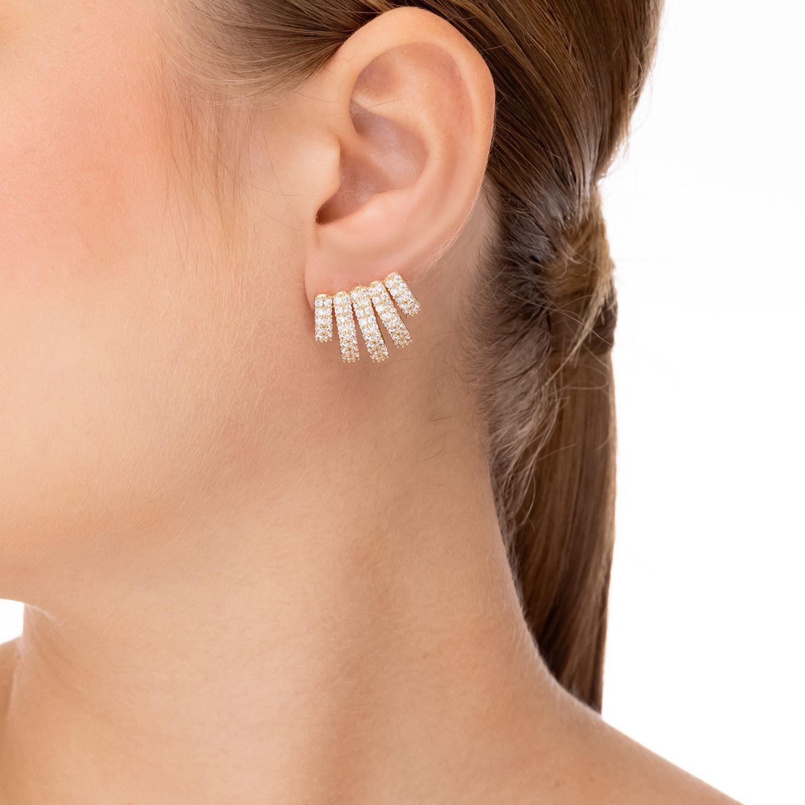 Elegância e brilho em cada detalhe! O Brinco Garras Cravejadas apresenta pedras delicadas seguradas por garras finamente trabalhadas, criando um efeito sofisticado e moderno.