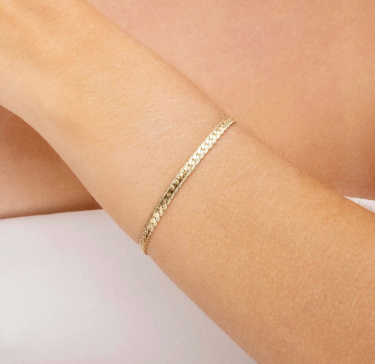 Produzida com materiais de alta qualidade, como o banho em ouro 18k, prata 925 ou aço inox (ajustável conforme seu produto), a pulseira possui acabamento polido que garante brilho duradouro e toque refinado. Seu trançado suave proporciona conforto no uso diário, além de um visual marcante e delicado.